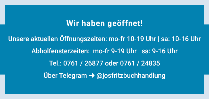 Wir liefern weiterhin montags bis freitags kostenlos aus! Unsere BotInnen legen die Bücher verpackt vor der Tür ab oder werfen sie in den Briefkasten. Bitte geben Sie bei der Bestellung auch an, wo man die Bücher ablegen kann, falls Sie nicht zuhause sein sollten.