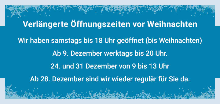 Mo-Fr 9.00-19.00 Uhr I Sa 10.00-18.00 Uhr